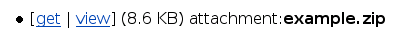 <<AttachList(pagename)>> lists the attachments of the page with the given pagename.